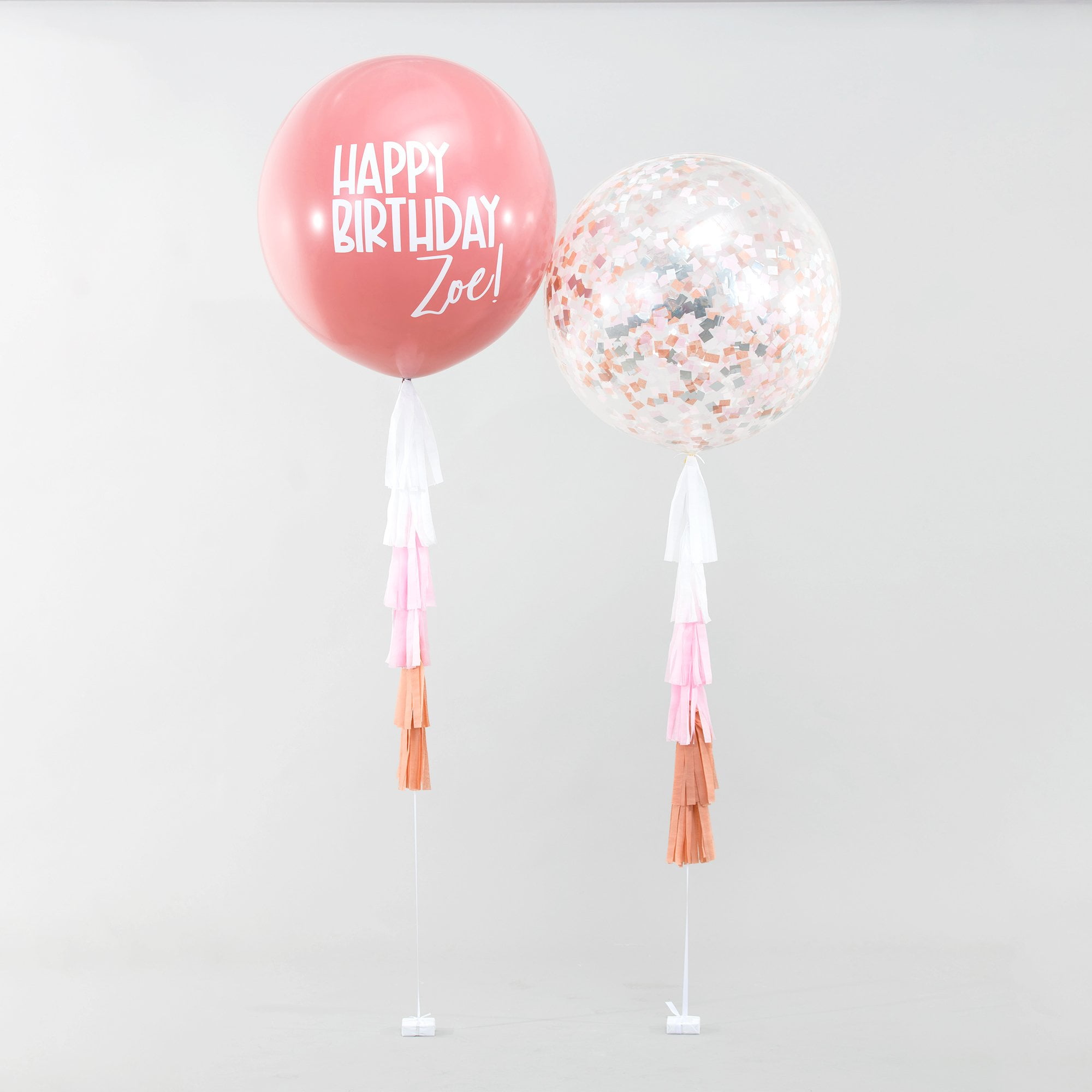 This Big Ass Balloon (BAB) Package includes two beautiful balloons, handmade and fully assembled tassels, vinyl lettering, and weights in one of our captivating color schemes: